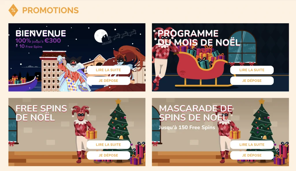 | Promotions régulières | Happy Hour, Mardi Gras, Free Spins hebdomadaires |